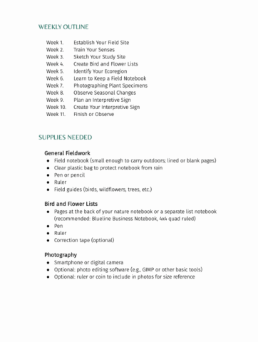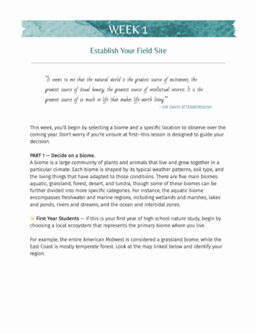 - A guide to choosing and studying a local ecosystem (e.g., woodland, aquatic, grassland)