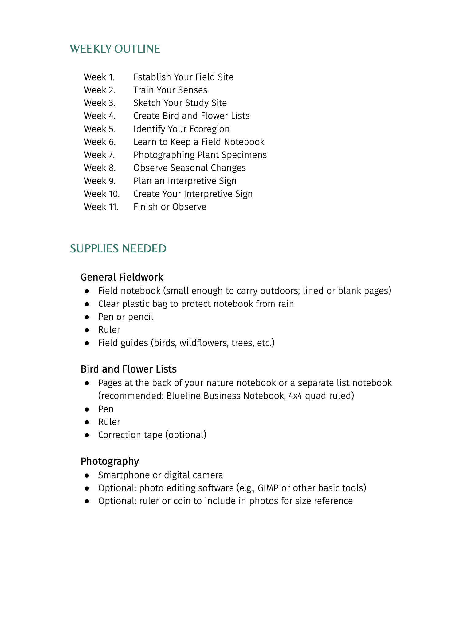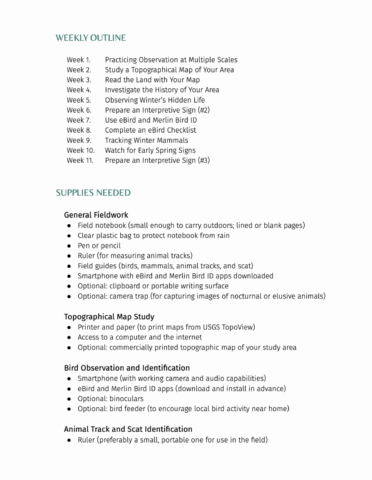 - Student-directed Field Observations and At-Home Activities