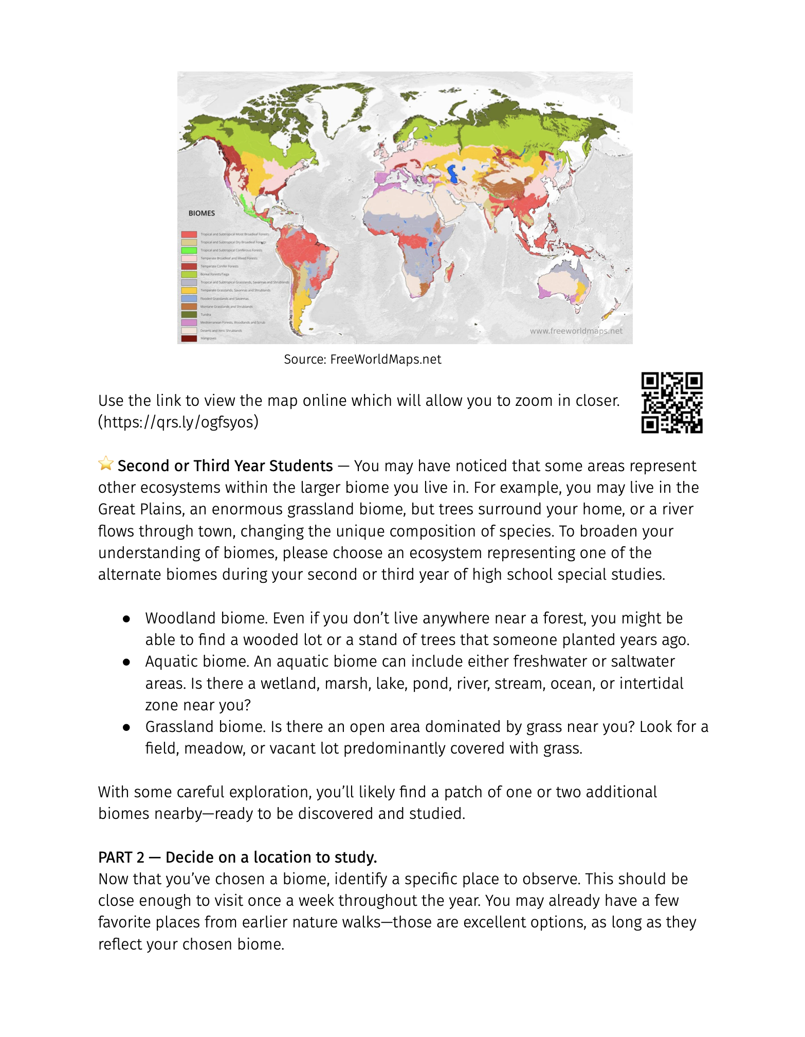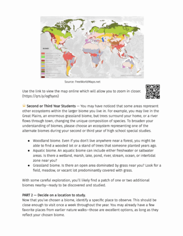 Rotation A: Focus on the primary biome where you live.