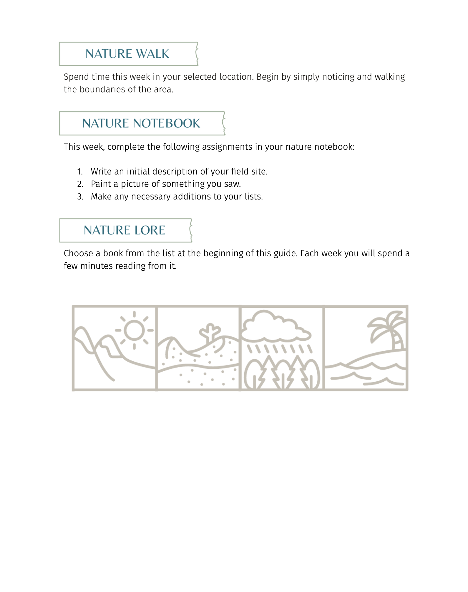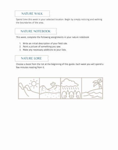 - Nature notebook prompts to support written narration, illustration, and reflection